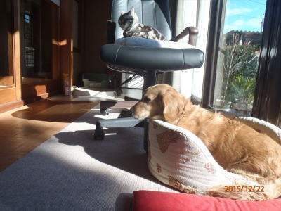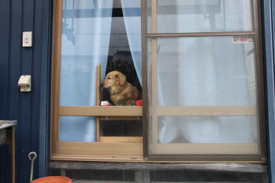 | 玄関前でシャラのひなたぼっこの邪魔をしに | |