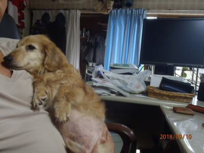 | ご主人に抱かれ 愛くるしい目 見えていない | ご主人の仕事のデスク前で抱かれ |