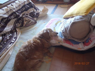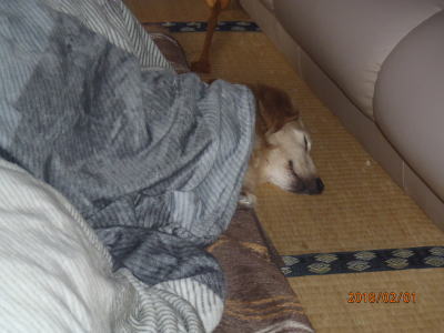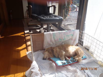 | 一日の半分以上を寝て過ごす | ご主人の足元で熟睡 下半身の毛を刈った |