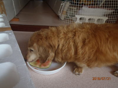| 主人のベッドの横でお休み中 | 大好きなスイカを |