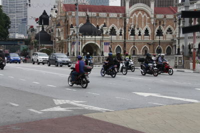 | クアラルンプールのTAX 国内どこに行っても小型バイクが多く、車以上のスピードで走行している。 |