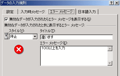 『エラー-メッセージ』を選択し、『スタイル』の▼をクリックし停止を選択します。