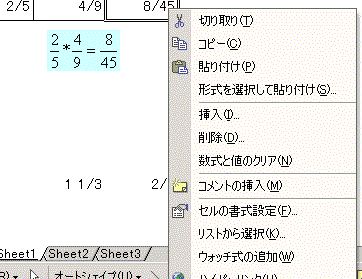 セルの中に、分数を表示させるには。 |