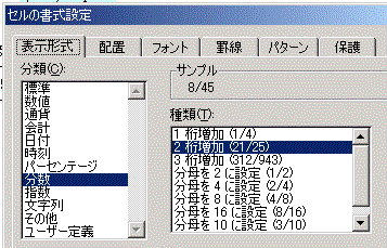 エクセルで分数を表示させる方法