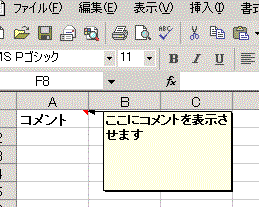 上記のように、セルにコメントを付け、セルに触れたときに表示させる