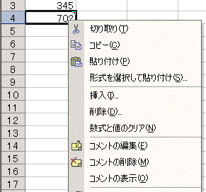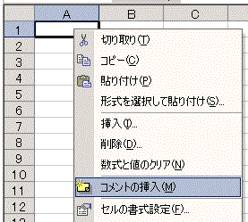 コメントを付けたいセルを選択し、マウスで右クリツクする。